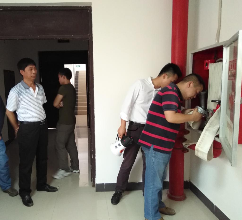 消防科科长钟国猛和张艺福老师现场讲解灭火器、消防栓原理及使用步骤,并让培训职工陆续参与灭火器材实操。