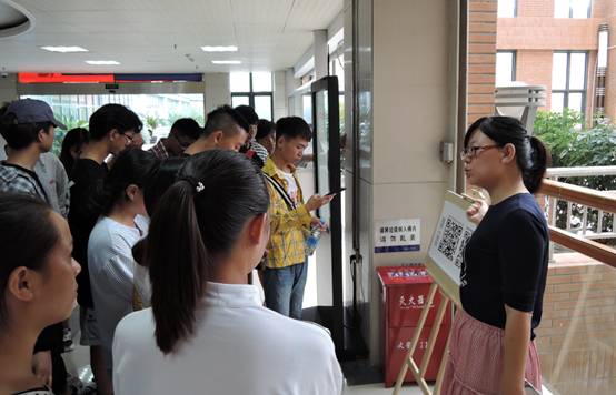 图书馆与各教学院协力合作,确定具体的培训时间及场次。入馆教育培训由图书馆利用讲解和服务窗口参观实践两个环节。图书馆利用讲解环节,结合新生专业方向,从“图书馆印象”、 “馆藏资源分布”、“图书的查找与借还”、“数字图书馆的利用”和“多媒体阅读”等方面给同学们作了详细的介绍,并就新生在使用图书馆时遇到的常见问题作了解答,引导新生文明使用图书馆。服务窗口参观环节,图书馆老师指导新同学们进行RFID自助借还系统和电子借阅机的实践操作。